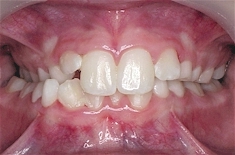 | The upper teeth should fit outside the lower teeth like a lid on a box. If the upper jaw is too narrow, the lower jaw usually swings to one side to allow the back teeth to mesh.