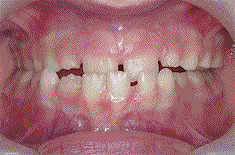 The removable appliance pictured on the right was used to push the two front teeth forwards.